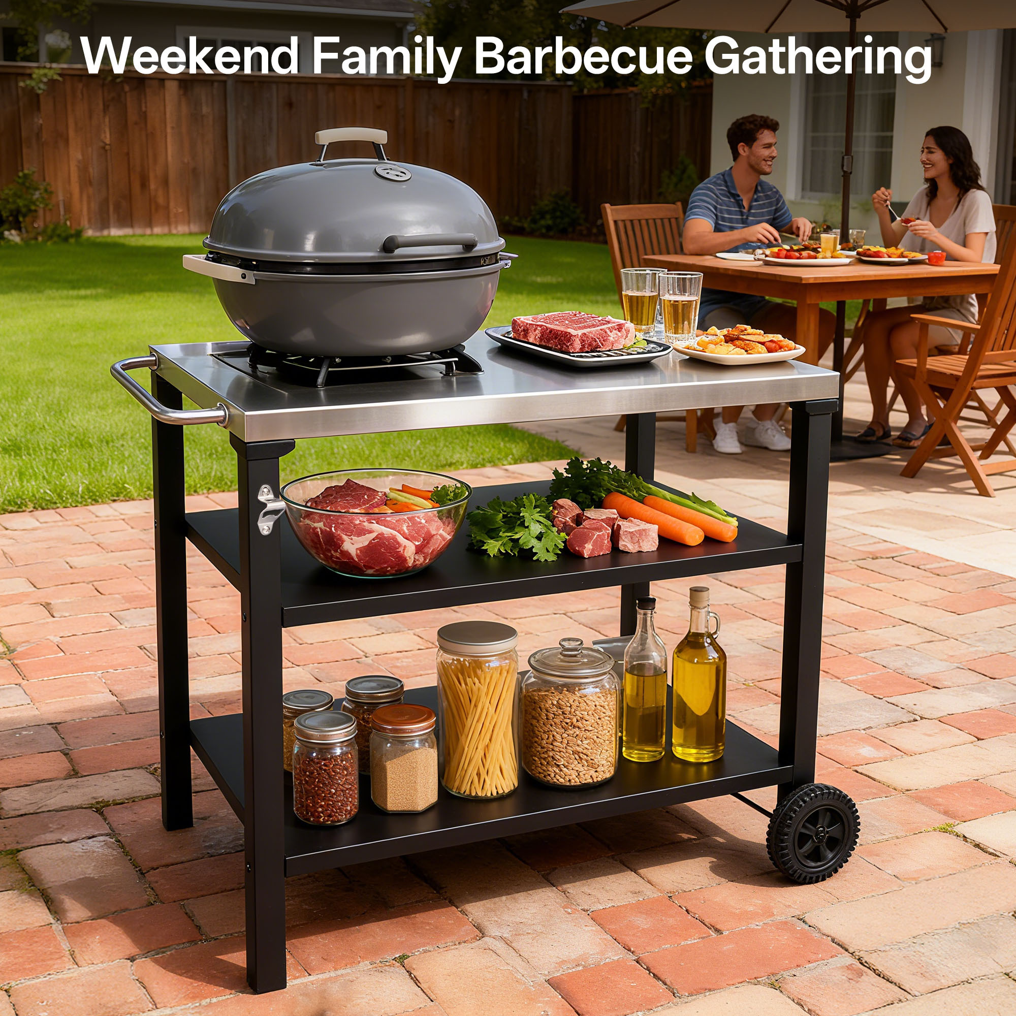 - Multifunctional DesignVersatile enough to serve as a BBQ prep station, pizza oven stand, outdoor bar cart, or serving table. Perfect for backyard grilling, camping trips, poolside parties, and more, adapting to your lifestyle.