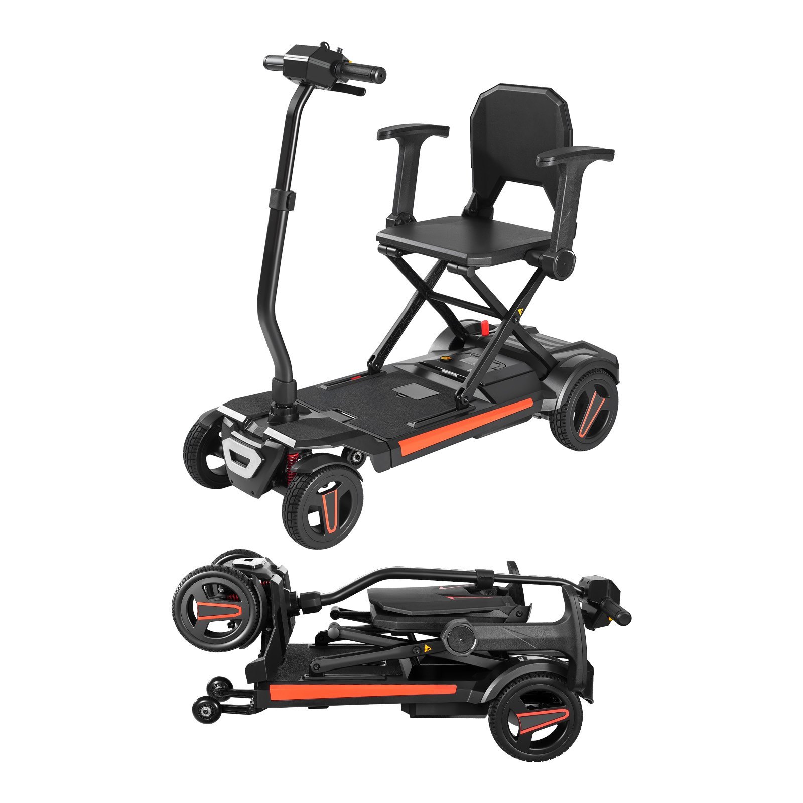 Enhanced Mobility & Stability: VEVOR 4-wheel integrated folding mobility scooter features a lightweight yet durable aluminum alloy frame, supporting up to 265 lbs and 9° climbing angle. It delivers enhanced stability and smooth rides for seniors and individuals with limited mobility
