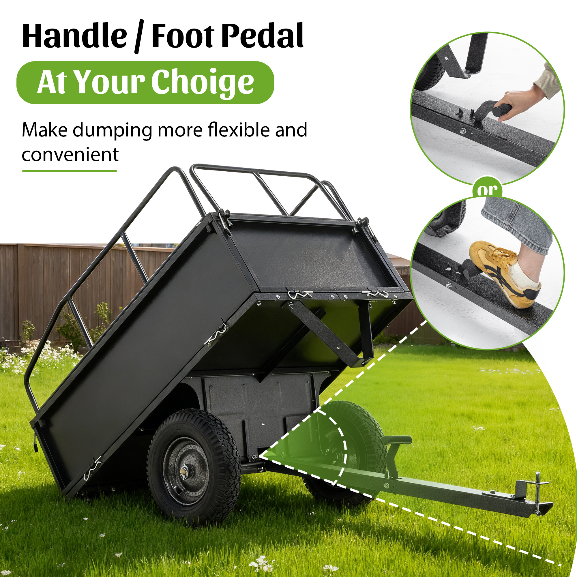 - 【Effortless Dual-Control Dumping】Experience ultimate unloading convenience with your choice of two dumping methods. Use the hand-operated lever for precise, controlled material placement, or engage the heavy-duty foot pedal for quick, hands-free bulk dumping. This flexible design saves you both time and physical effort.