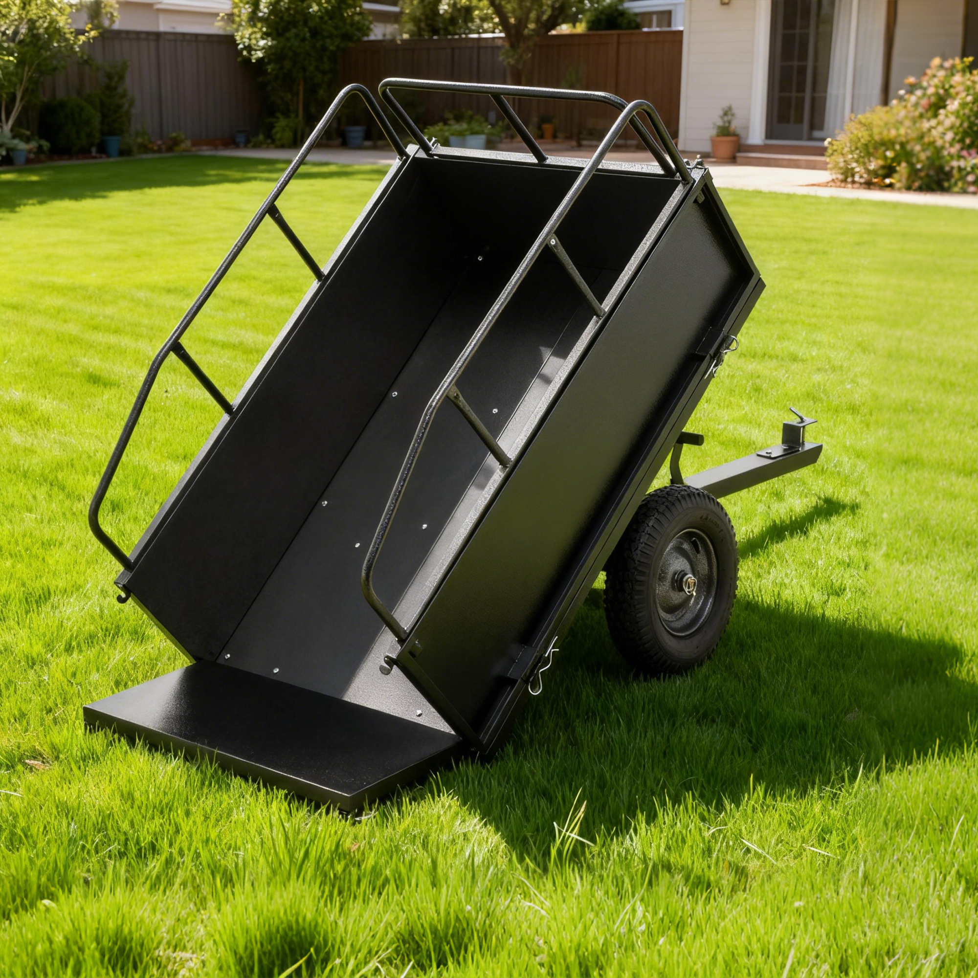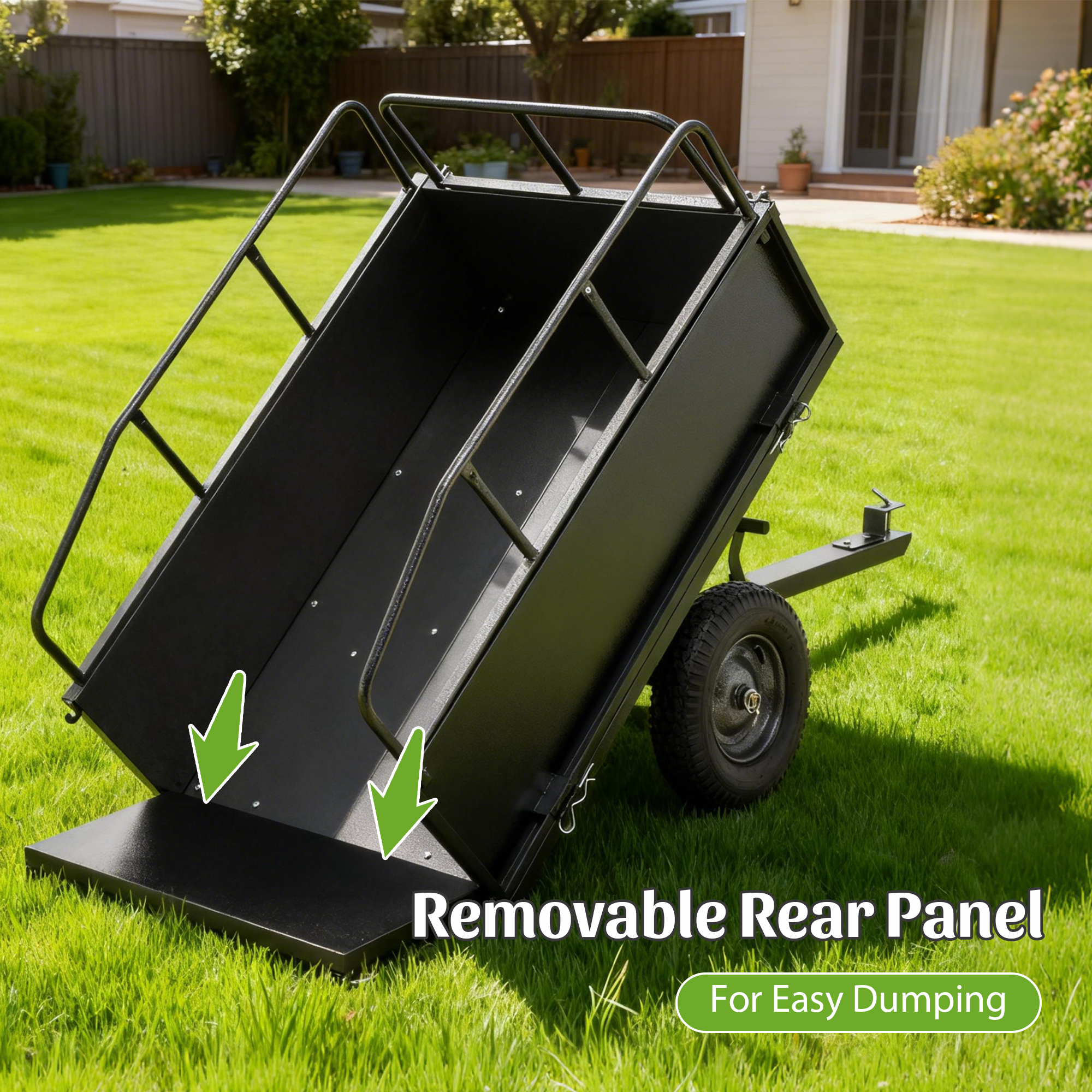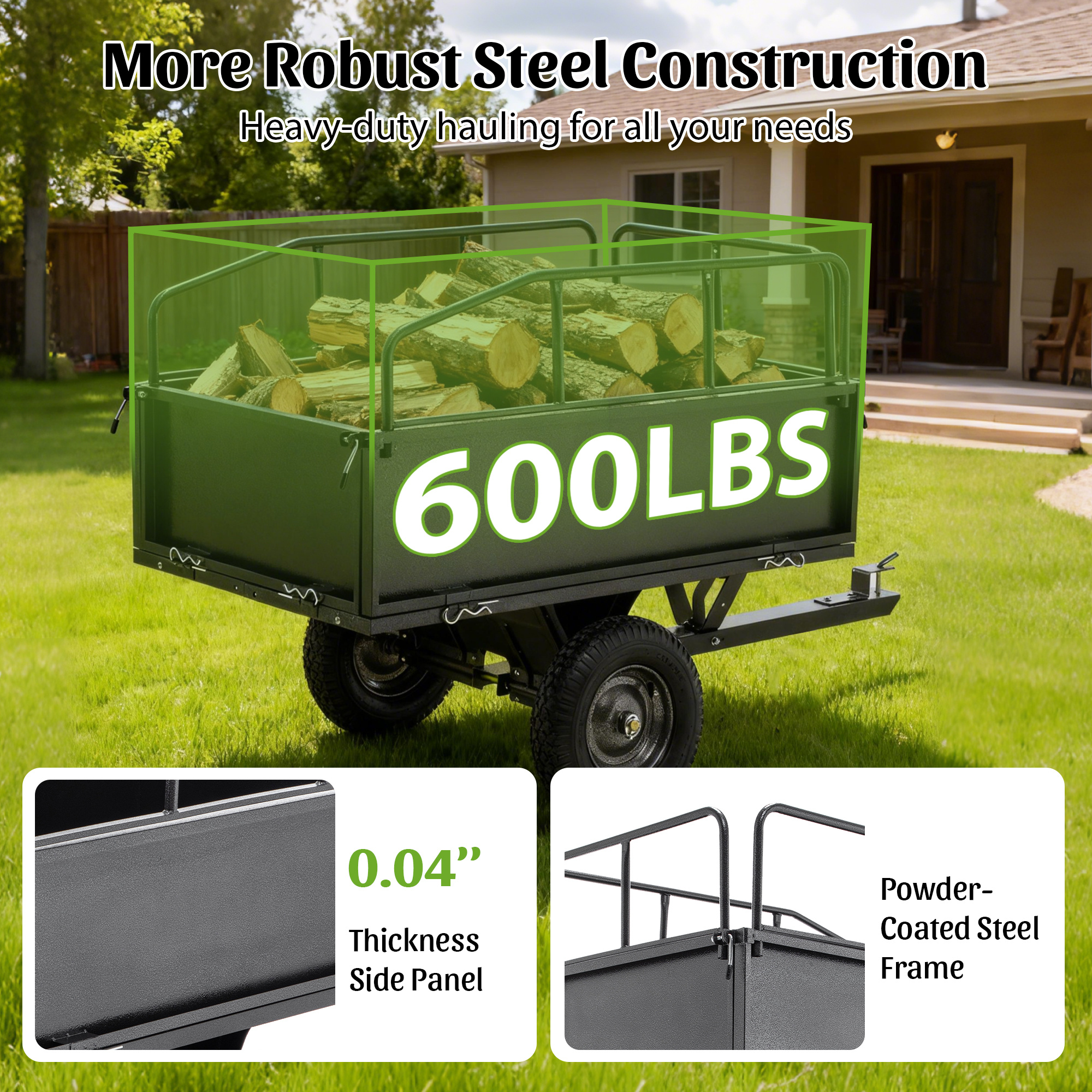 - 【High-Capacity Hauling Performance】Tackle big projects with a massive 17 cubic feet of volume and a 600-pound load capacity. This dump trailer effortlessly transports everything from soil, mulch, and gravel to yard debris and landscaping materials. The three-sided retaining walls maximize usable space, allowing you to move more with fewer trips.