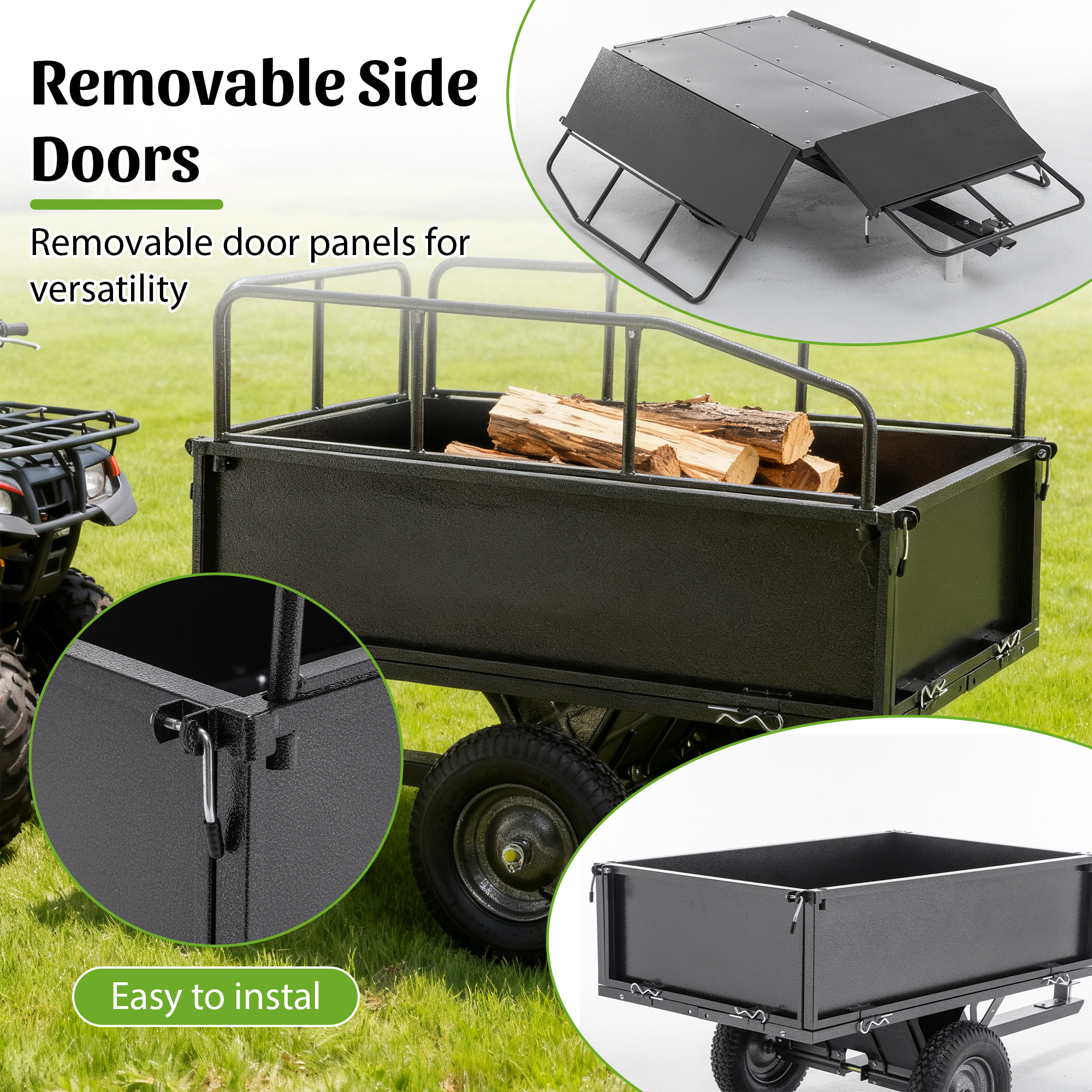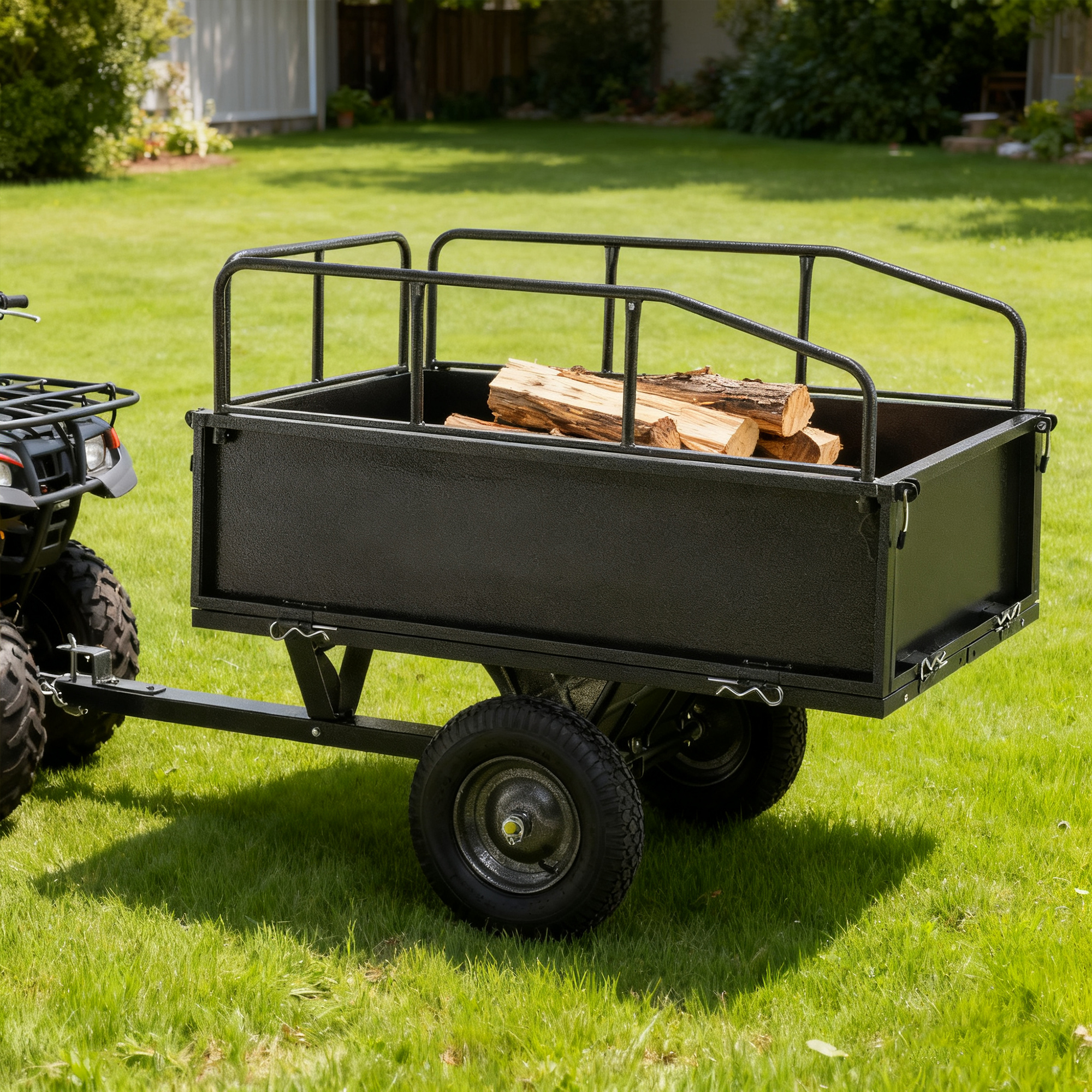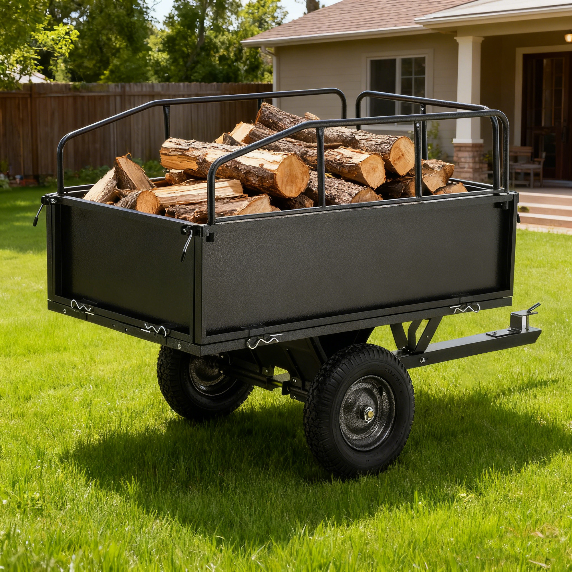 - 【High-Capacity Hauling Performance】Tackle big projects with a massive 17 cubic feet of volume and a 600-pound load capacity. This dump trailer effortlessly transports everything from soil, mulch, and gravel to yard debris and landscaping materials. The three-sided retaining walls maximize usable space, allowing you to move more with fewer trips.