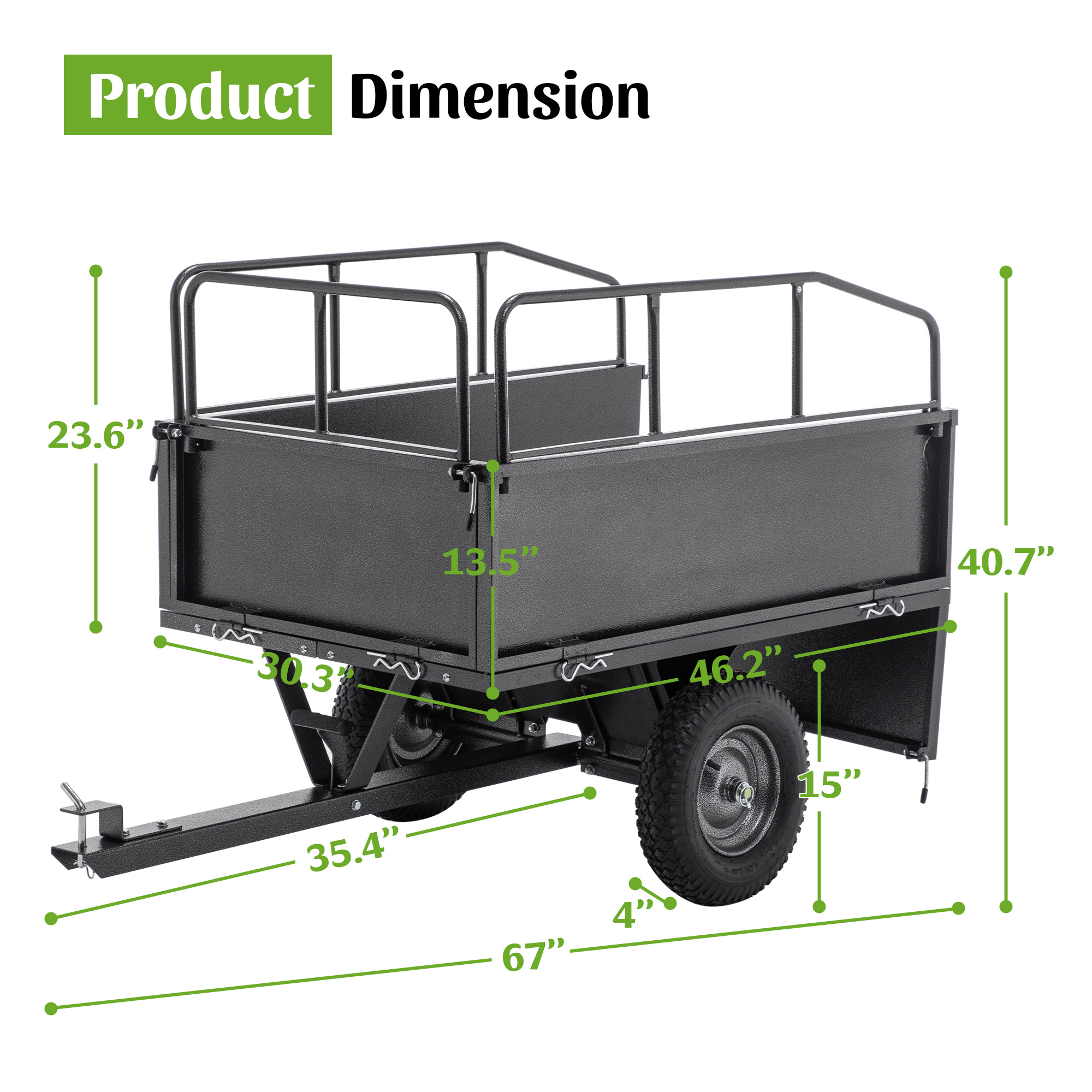 Product Name:600LBS Heavy Duty Steel Dump Cart Trailer, 17 Cu.Ft. Tow Behind Hauling & Dumping Wagon for ATV, Lawn Tractor and Garden with 16″ Tires