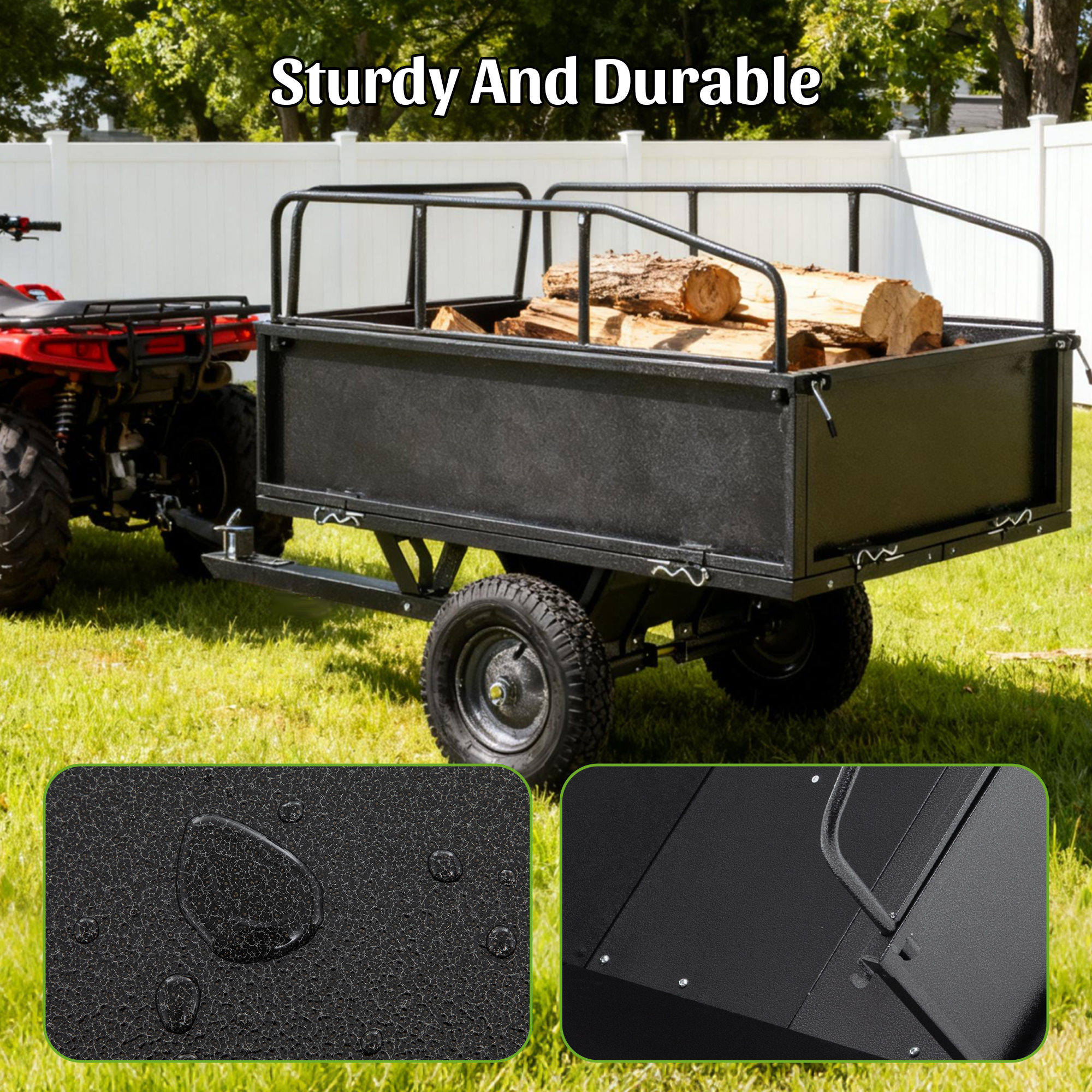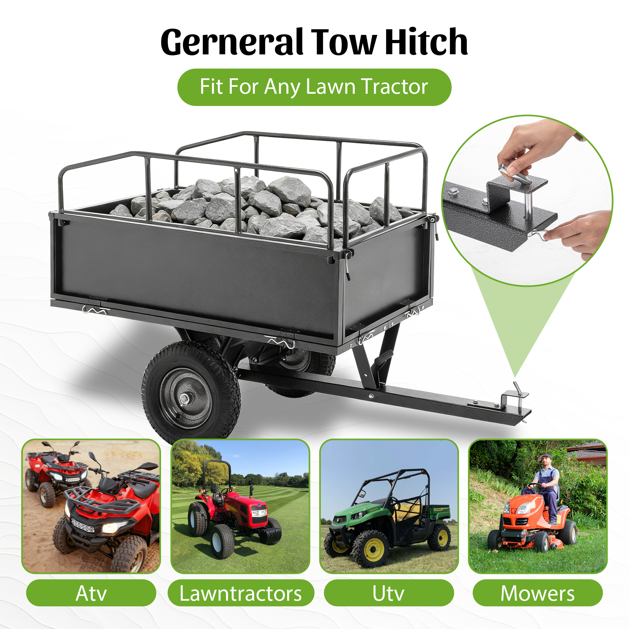 - 【Unmatched Towing Versatility】Engineered with a standard 0.47-inch hitch pin, this dump cart seamlessly connects to a wide range of vehicles. Effortlessly tow it behind your lawn tractor, ATV, UTV, or zero-turn mower for a powerful and adaptable hauling partner that streamlines any task around your property.