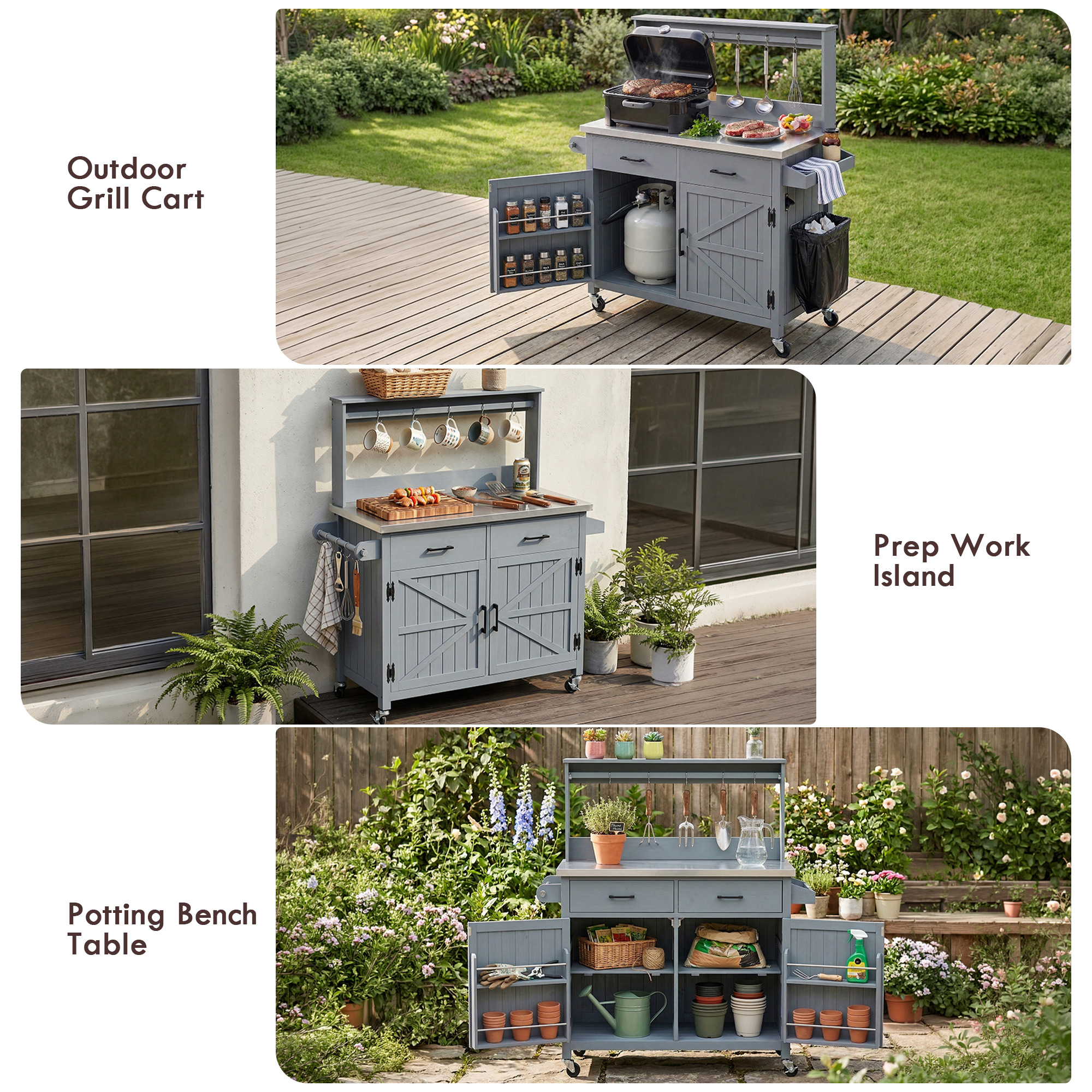 Usage Scenario:Indoor / Outdoor Garden Storage, Garden Work Station BBQ, Pool side, Party, Food Prestastion