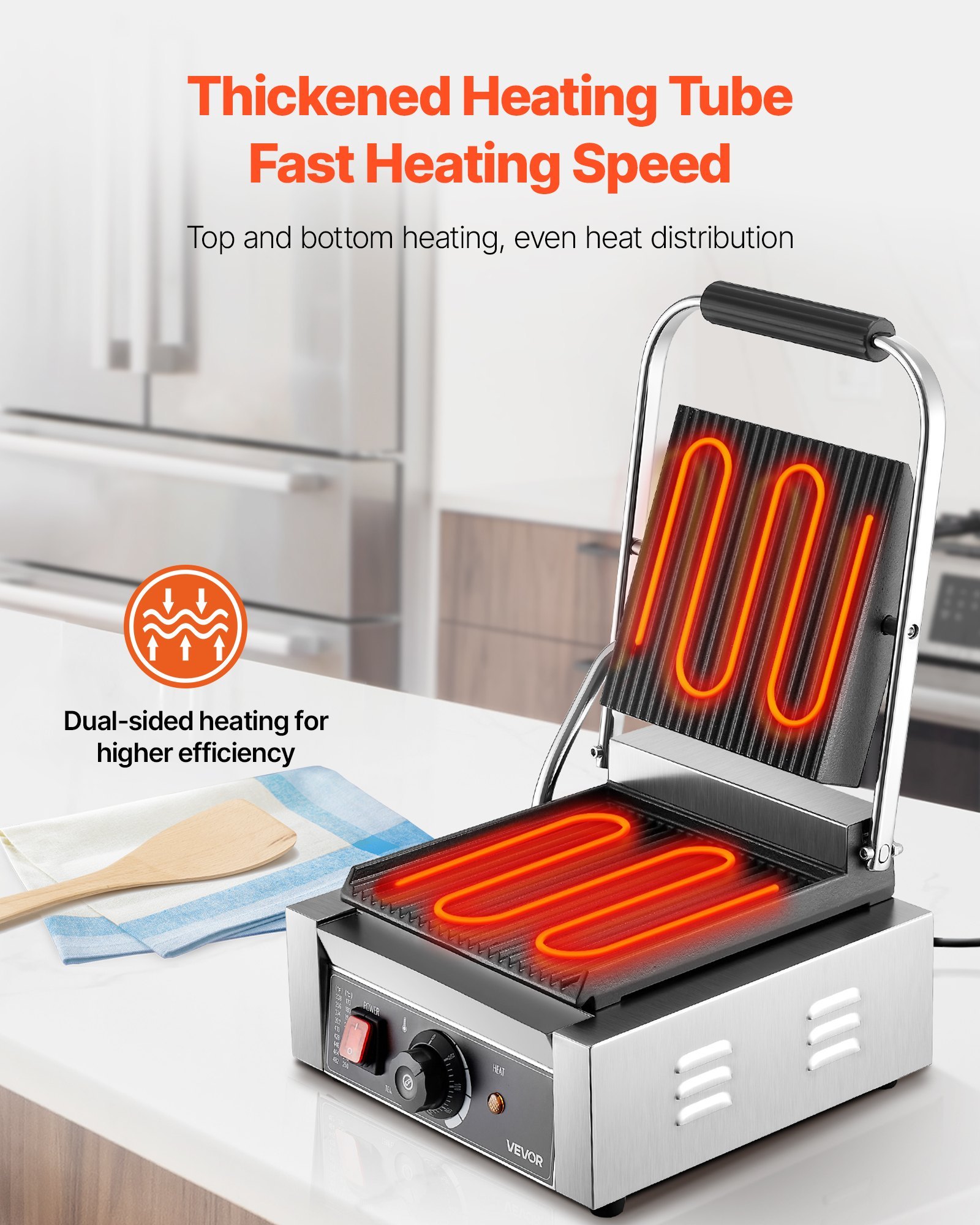 VEVOR kommerzieller Panini-Grill Kontaktgrill 1800 W für Sandwiches Steak Bacon Hamburger, Sandwichmaker Pressgrill aus Edelstahl mit Griff & Temperaturregelung & 22 x 23 cm Heizplatte, Paninipresse