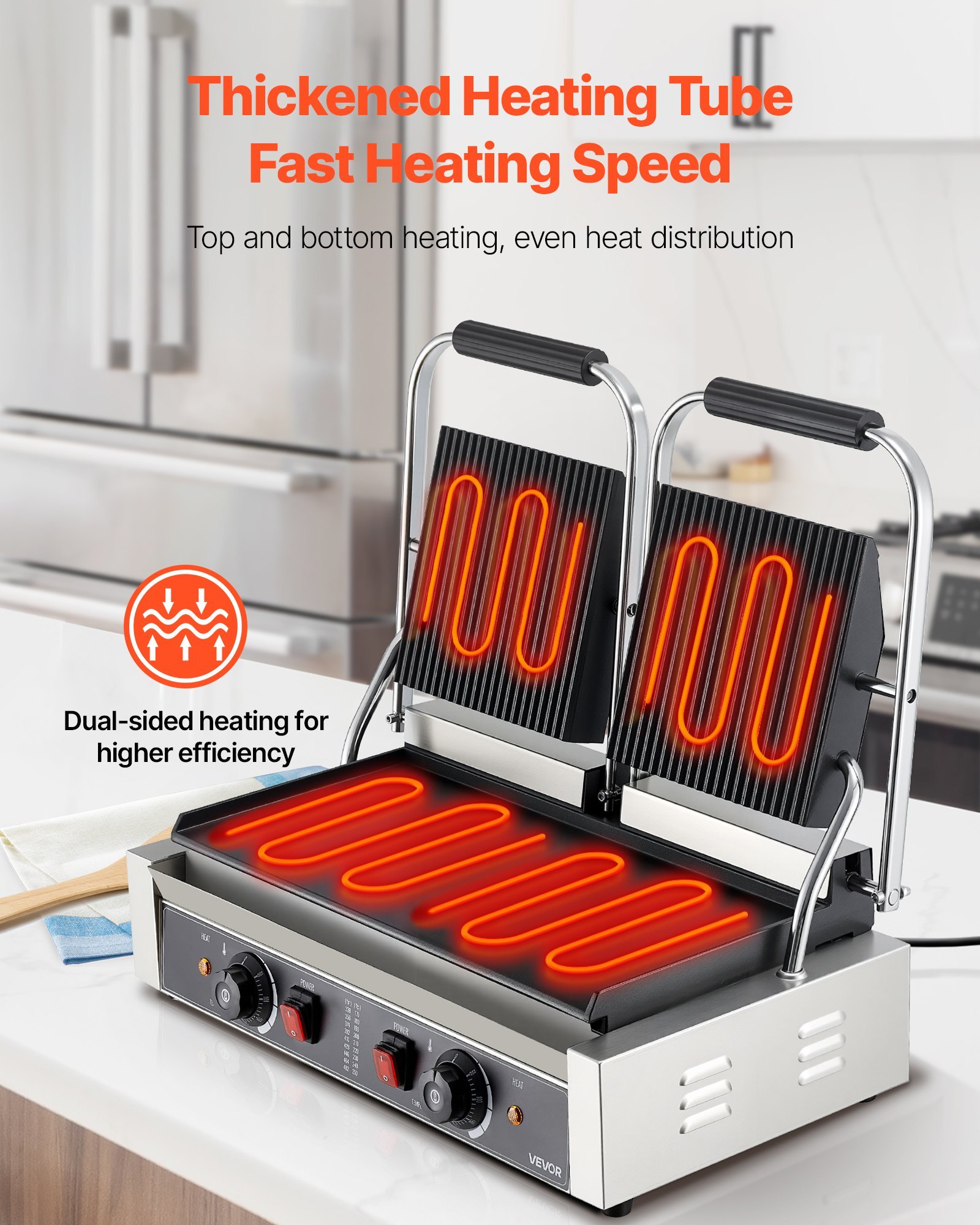 VEVOR kommerzieller Panini-Grill Kontaktgrill 3600 W für Sandwiches Steak Bacon Hamburger, Sandwichmaker Pressgrill aus Edelstahl mit Griff & Temperaturregelung & 48 x 23 cm Heizplatte, Paninipresse